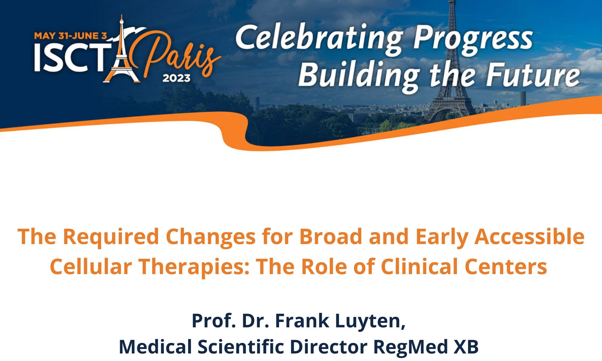 Frank was invited to speak during one of the five sessions titled ‘The required changes for broad and early accessible cellular therapies: the role of clinical centers’ in which he shares his knowledge about working with clinical centers as sponsors in trials. Frank is an expert in bridging the gap between bench and bedside and making a successful translation of innovative treatments to patients and the market, which is what he is responsible for within RegMed XB. Next to that, he gained much of his knowledge as Co-founder of TiGenix. TiGenix developed ChondroCelect™, the first cell based ATMP with central registration at the European Medicines Agency.